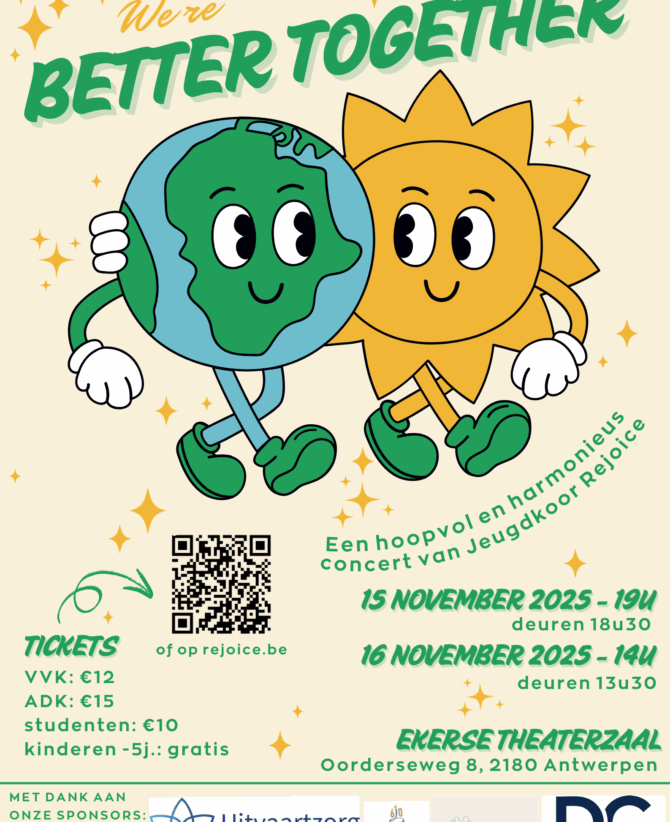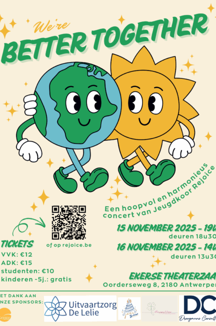 Rejoice is een jongerenkoor met leden van 13 tot 25 jaar. Zingen is niet enkel een passie, maar ook een lijm die ons doet binden. Vriendschappen worden gesloten, creativiteit wordt ontplooid en het voornaamste: plezier hebben à volonté!